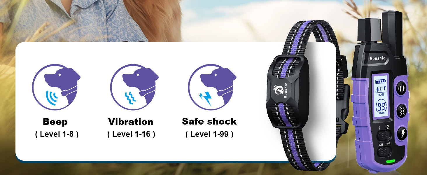 The collar features Beep, Vibration, and Gentle Shock modes, allowing you to customize training based on your dog's behavior and needs.